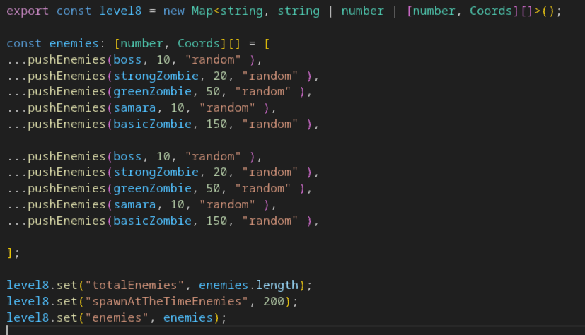Level data contain an array of monsters, which will be spawned and also how many monster can be present on the Playground at the time.